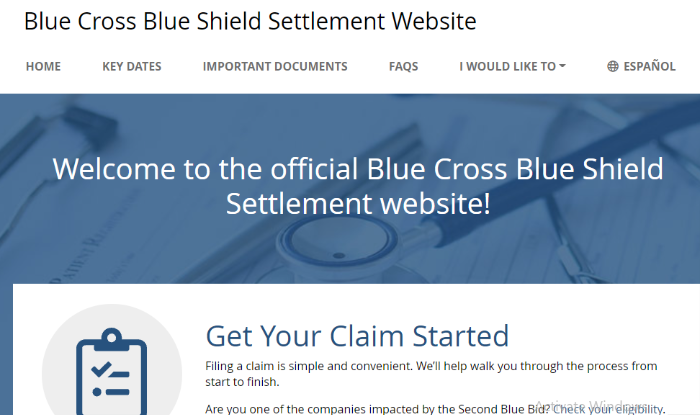 The site is intended for people who are eligible to participate within the United States who have bought health insurance through Blue Cross and want to submit a claim and be paid once the count has approved the settlement.
