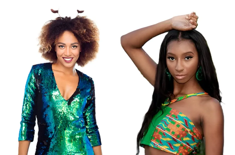 - Defined Kinks & Coils, styled with color accents or space buns