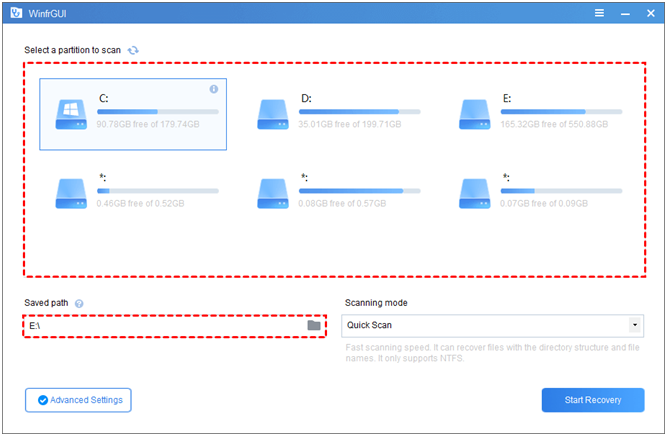 WinfrGUI (supports Windows 10 2004 and above) is a free third-party data recovery program, which fully invokes the functions of Windows File Recovery and provides a graphical user interface which users can recover deleted files with a few clicks.