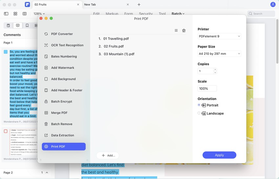 Users can now print their PDF documents in batches using PDFelement for Mac. The addition of this function across the batch processing system allows them to print multiple files across their system. Whether it is a complete folder or a set of specific files, you can now easily import them and have them printed according to your liking.