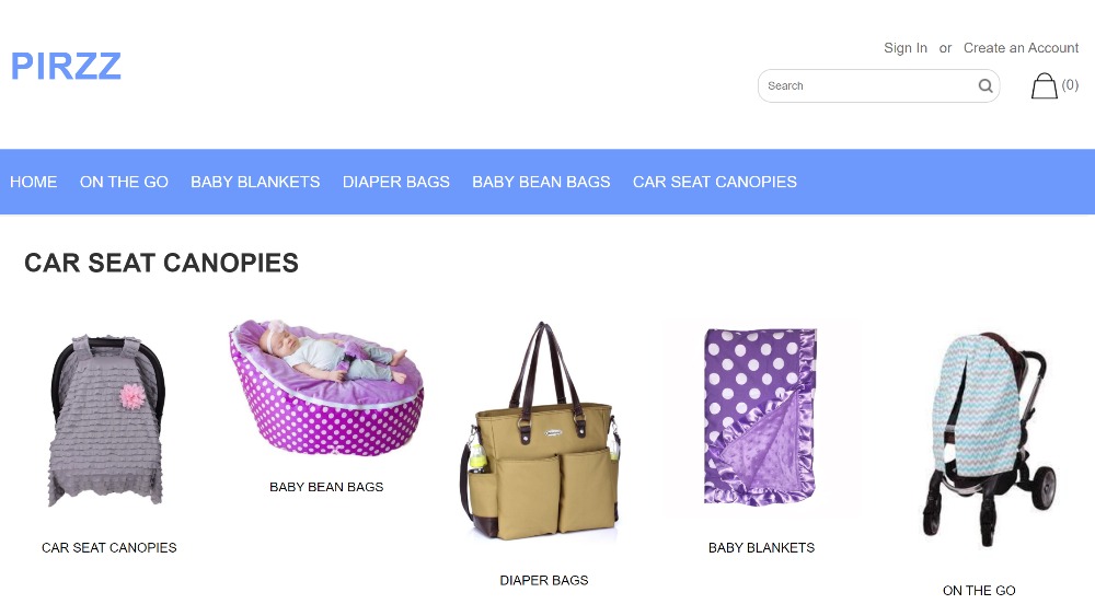 Although Pirzz.com has a section for “Write a Review”, one rarely finds reviews. Only one product, the car seat cover, has four stars. This is not a good sign, as products such as baby blankets and versatile cushions are not given four stars.diaper bags Look very attractive.