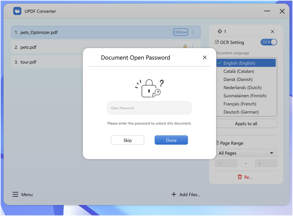 UPDF has OCR or Optical Character Recognition module feature. You can use it to convert scanned or image-based PDFs into editable formats. It offers high conversion accuracy and supports up to 23 different languages.