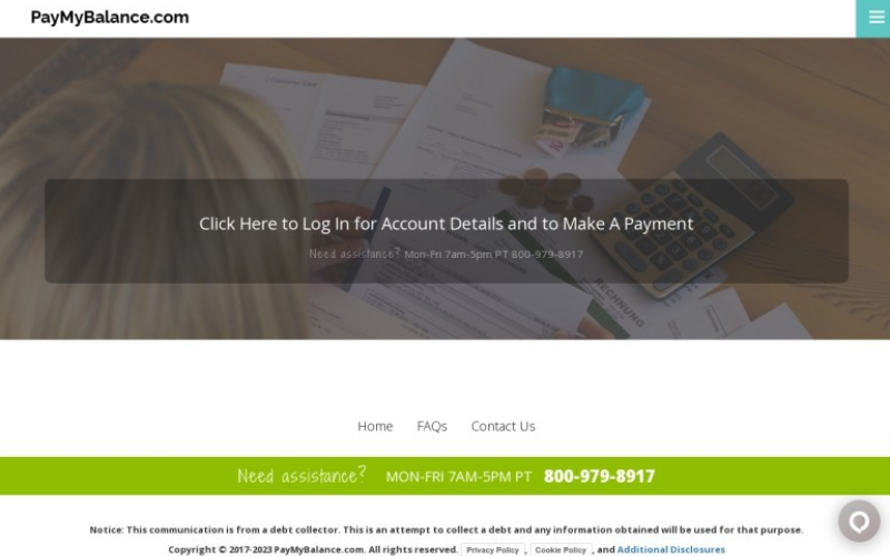 The caller did not tell the customer about the debt. Paymybalance.com scam is a rumor. Paymybalance.com has no webpage on which customers can access their account balances or initiate the payment process. Paymybalance.com reveals that it is affiliated to FCR, and offers contact information and FAQs.