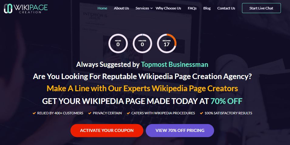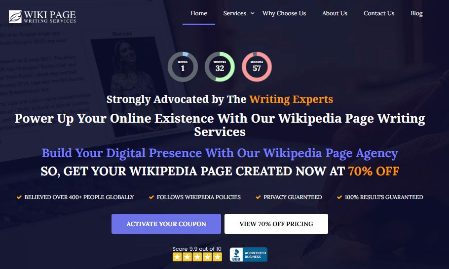 Wiki page writing services is one of the reputed names of Wikipedia page creators and is famous for creating smooth and flawless Wikipedia pages. Their motto is to serve their customers with everything they demand of top-notch quality. This company not only has experts who create Wikipedia pages but also do have a big team of writers and editors who take care of your business needs. .